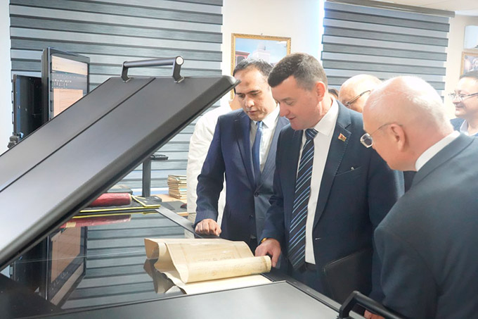 — Национального архива научно-технической и медицинской документации Узбекистана, где представители белорусской стороны посетили выставочный зал, читальный зал, архивохранилище, ознакомились с процессами реставрации и цифровизации архивных документов.