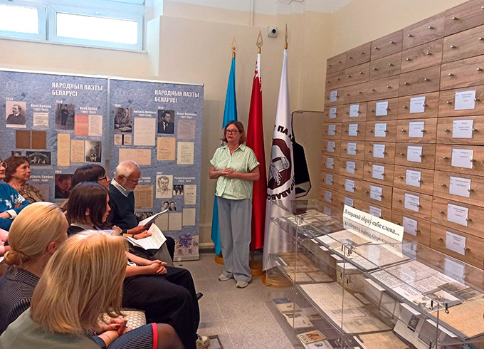 Ведущий архивист Татьяна Александровна Анпилогова провела презентацию литературно-документальной выставки «Я справай абраў сабе слова». Гости получили уникальную возможность познакомиться с рукописями, фотографиями, письмами из фонда Наума Кислика, раскрывающими творческий путь и биографию писателя. Прозвучали строки стихотворений Наума Кислика в прочтении заслуженного артиста Республики Беларусь Валерия Николаевича Шушкевича.