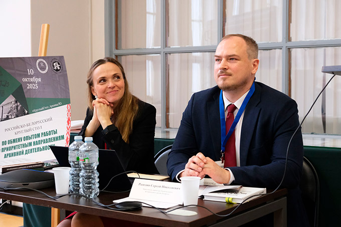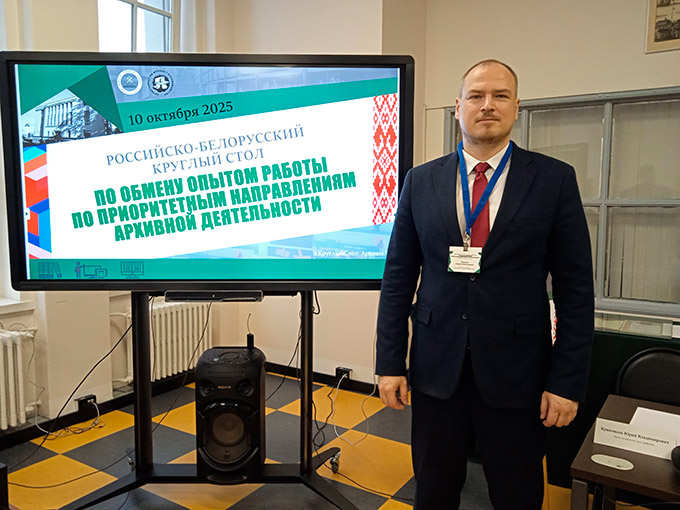 10 октября 2025 г. заместитель директора Сергей Рындин принял участие в работе российско-белорусского Круглого стола по обмену опытом работы по приоритетным вопросам архивной деятельности (г.Выборг, Российская Федерация), организаторами которого выступили Архивное управление Ленинградской области и Департамент по архивам и делопроизводству Министерства юстиции Республики Беларусь.