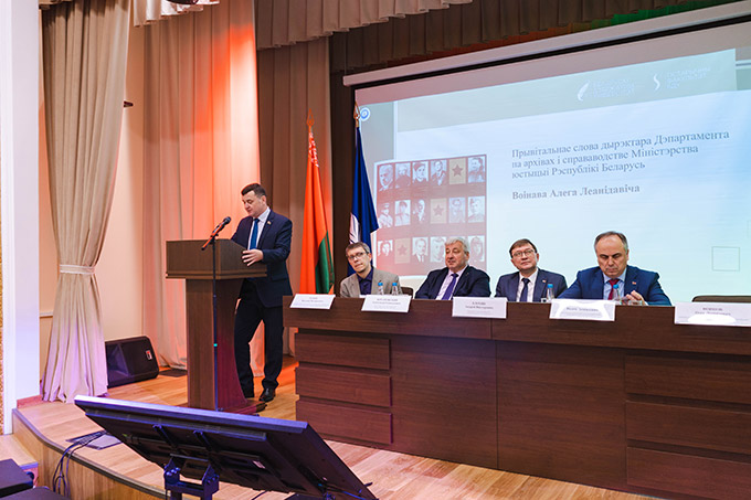С приветственным словом выступили проректор по научной работе БГУ, доктор химических наук, профессор А.В.Блохин, директор Департамента по архивам и делопроизводству Министерства юстиции Республики Беларусь О.Л.Воинов, декан исторического факультета БГУ, доктор исторических наук, профессор А.Г.Кахановский, директор Института истории Национальной академии наук Беларуси, кандидат исторических наук, доцент В.Л.Лакиза и др.