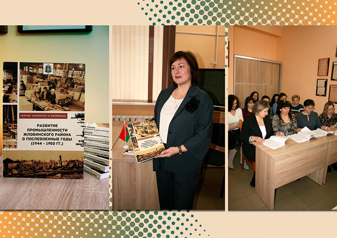 28 ноября в учреждении «Зональный государственный архив в г.Жлобине» состоялась презентация сборника под названием «Развитие промышленности Жлобинского района в послевоенные годы (1944–1950 гг.)». Открывая мероприятие, директор архива Галина Анатольевна Дударева выразила благодарность всей команде активных и инициативных сотрудников архива, которые усердно работали над подготовкой этого сборника, отметив его как результат кропотливой и многодневной работы.