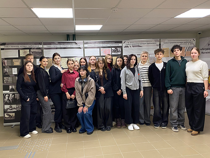 | 3. Коллективное фото учащихся учреждения образования «Могилевский государственный колледж искусств» на фоне баннерной выставки « Снова к прошлому взглядом приблизимся». |