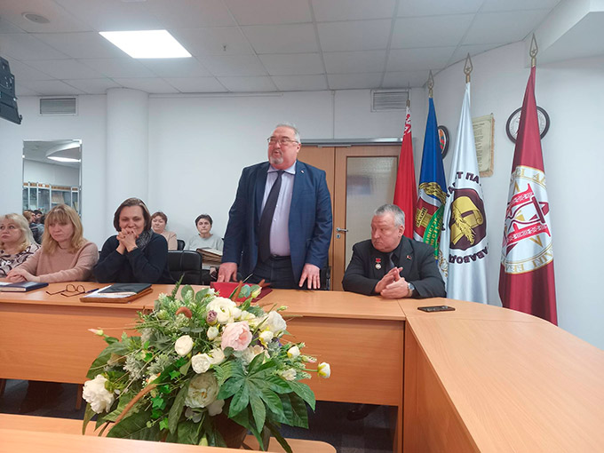 13 февраля 2026 г. состоялась торжественная встреча коллектива НАРБ с участником войны в Афганистане, председателем Минской городской организации ветеранов-пограничников С.В.Поповым.