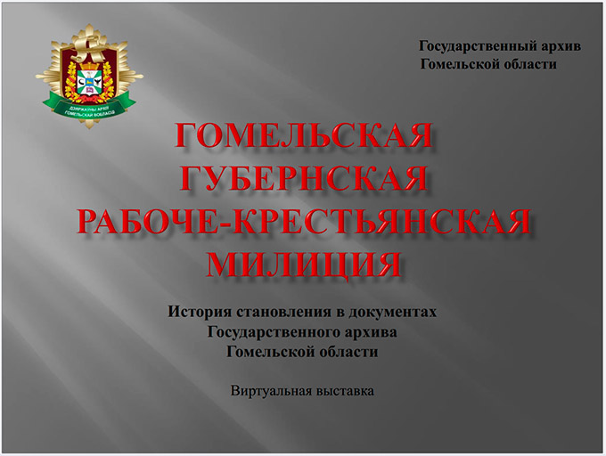 Учреждение «Государственный архив Гомельской области» представляет виртуальную выставку «Гомельская губернская рабоче-крестьянская милиция. История становления в документах Государственного архива Гомельской области».
