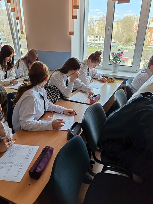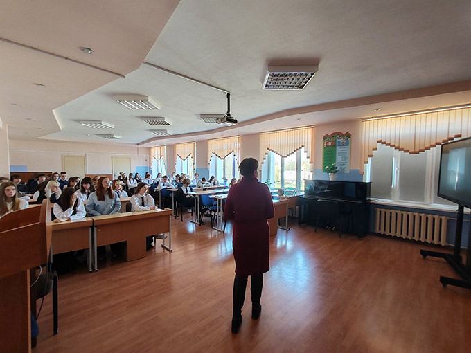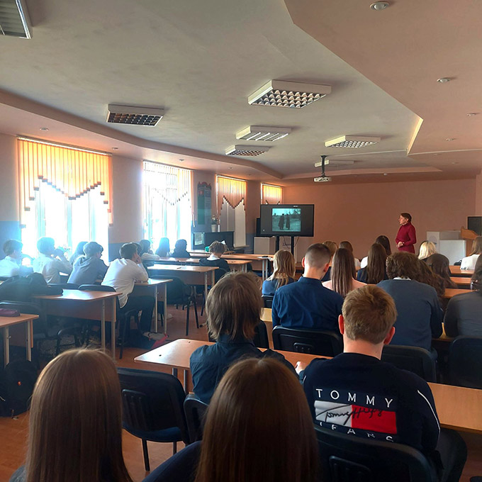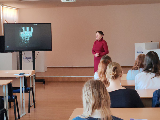 | 1. Заместитель директора Буевич Татьяна Владимировна в рамках проекта «Волгоград-Витебск: память поколений» проводит урок в Государственном учреждении образования «Средняя школа №11 г.Витебска имени М.М.Бахтина» для 10-го и 11-го классов. |