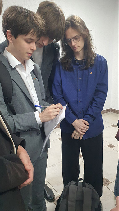 5–8. В фойе участники мероприятия знакомятся с выставками о Сталинградской битве и освобождении Витебска и проходят квесты о разминировании, памятниках Волгограда и Витебска, о Площади Победы в Витебске и о животных — участниках войны.