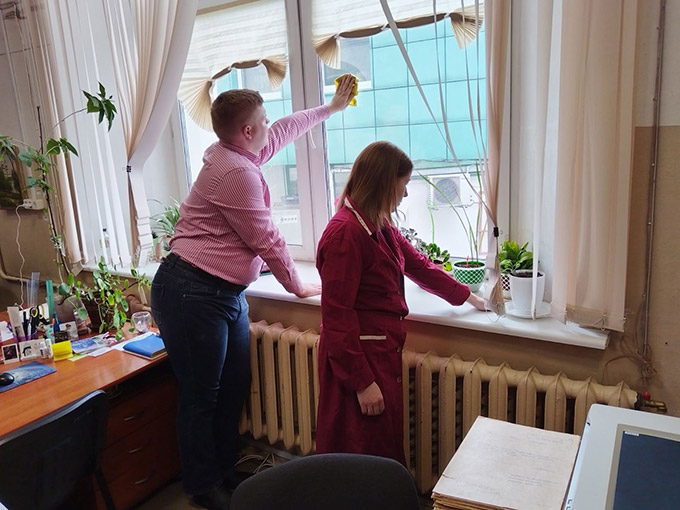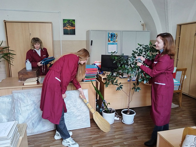 | 3. Работники БГАМЛИ во время уборки кабинета |