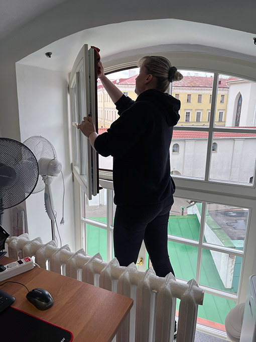В этот день работниками архива была проведена уборка служебных помещений и рабочих мест; приведена в надлежащие состояние прилежащая территория; в хранилищах №№1 и 2 – обеспылено более 60 коробок хранения.