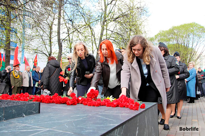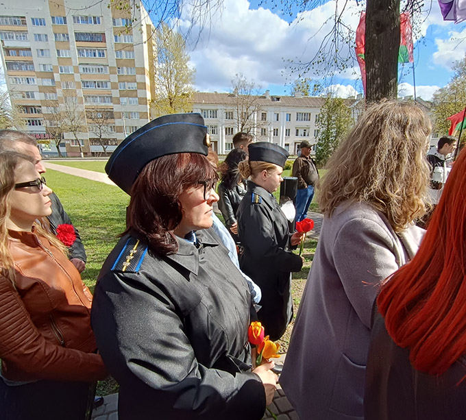 Начальник Межрайонного отдела принудительного исполнения Бобруйского района и г.Бобруйска Оксана Коцур с коллегами, директора учреждения «Зональный государственный архив в г.Бобруйске» Елена Заяц и Государственного учреждения «Бобруйский городской архив» Ирина Силивон, руководитель ВПК «Патриот» Татьяна Косинова приняли участие в открытии памятного знака, посвященного ликвидаторам и жертвам аварии на Чернобыльской атомной электростанции.