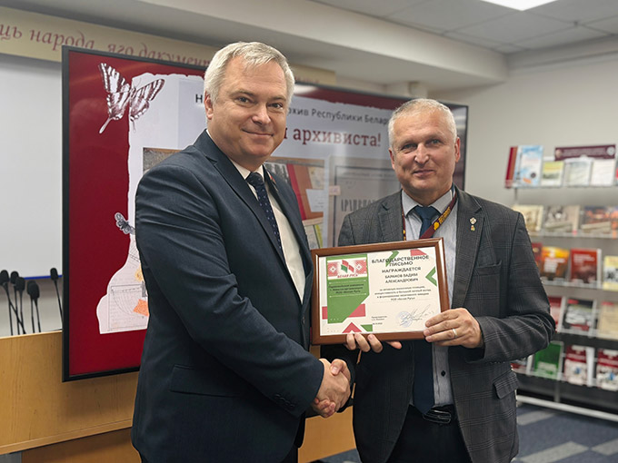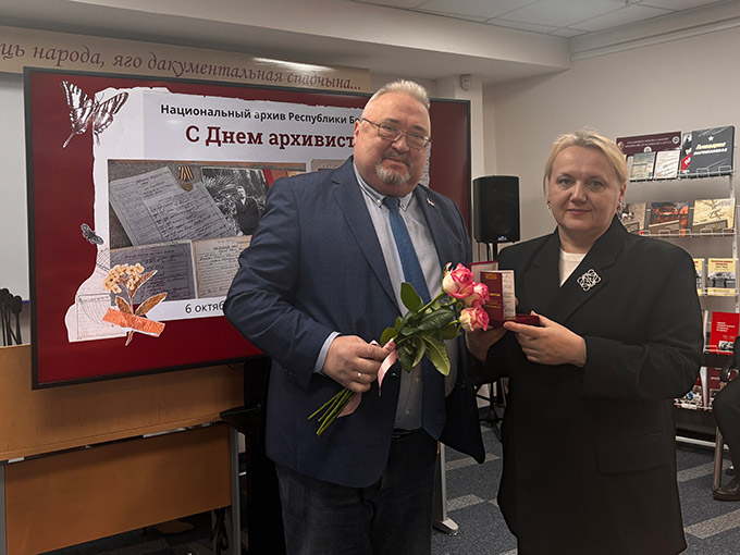 – The «Great Archivist of Belarus» badge from the Department of Archives and Records Management of the Ministry of Justice of the Republic of Belarus was presented to I.V.Dorogush, Head of the Personal Collections Department;