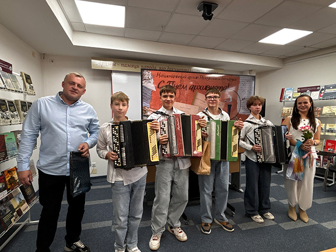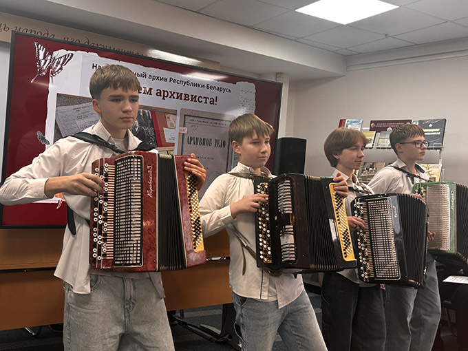 On the holiday, teachers and students from Minsk Secondary School No.77 performed musical gifts for the archivists.