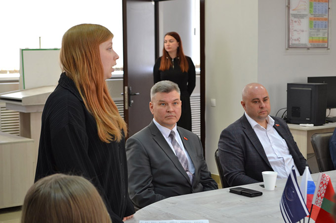 The participation of students from Russia — representatives of the Immanuel Kant Baltic Federal University (Kaliningrad), currently studying at Sukhoi Gomel State Technical University on an exchange program—gave the meeting a special international dimension. They joined the discussion along with Gomel students. Anastasia Artemyeva, a second-category archivist at the State Archives of the Gomel Region, presented a historical overview of the holiday’s origins. In her presentation, she detailed the stages of the formation of the Union State, archival documents, and the events that led to the signing of the fateful treaty in 1996.