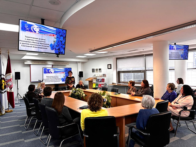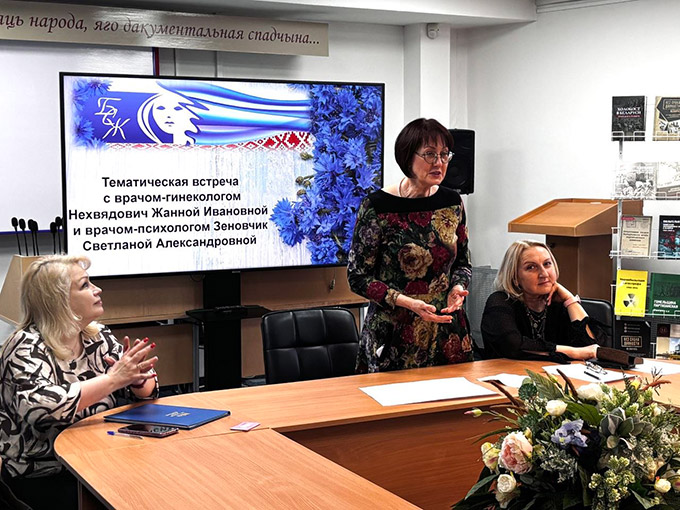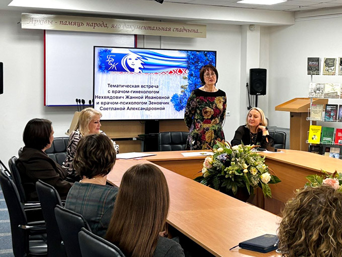 On April 7, 2026, the Belarusian Women’s Union, a primary organization of the National Archives of the Republic of Belarus, organized a thematic meeting with Zhanna Ivanovna Nekhvyadovich, a gynecologist and head of the antenatal clinic at Minsk City Polyclinic No.23, and Svetlana Aleksandrovna Zenovchik, a psychologist. The meeting featured an engaging discussion on women’s health. The participants focused on the key spiritual values of respect and love in relationships between the sexes. Zhanna Ivanovna and Svetlana Aleksandrovna also answered questions from the women in the archive.