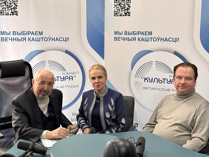 On April 8, 2026, Elena Aleksandrovna Makarenko, Director of the Belarusian State Archive-Museum of Literature and Art (hereinafter referred to as BGAMLI), and D.S.Samokhvalov, Leading Researcher of the BGAMLI Department of Information, Publication, and Document Use, participated in the program «Dialogues on Culture» hosted by journalist and Honored Worker of Culture of the Republic of Belarus Naum Yakovlevich Galperovich on the Kultura Radio channel.