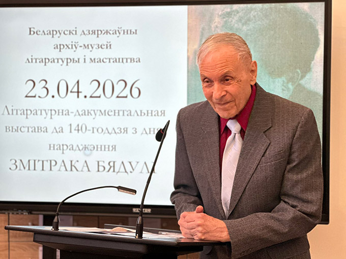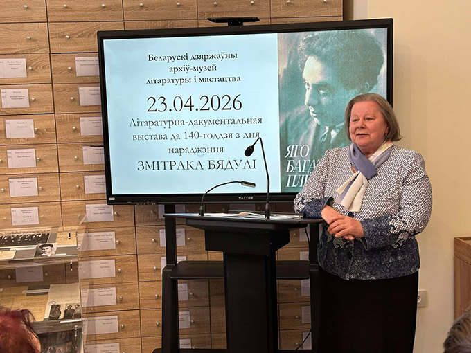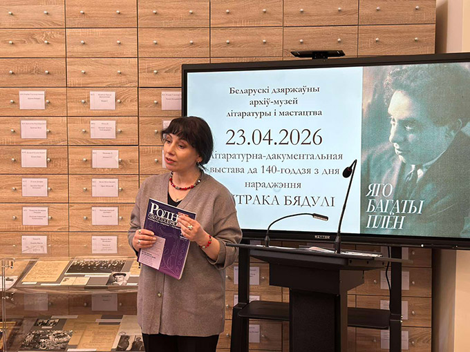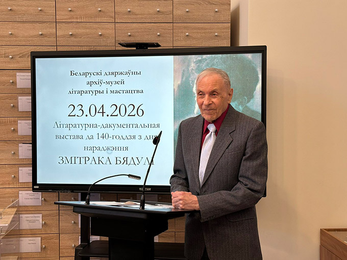 On April 23, 2026, the reading room of the Belarusian State Archives and Museum of Literature and Art (hereinafter referred to as BSAMLI) hosted the grand opening of the exhibition «Iago is rich in treasures», dedicated to the 140th anniversary of the birth of the classic Belarusian literary figure, Zmitser Byadulya.