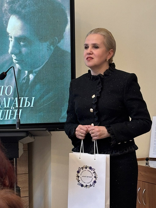 BSAMLI Director Elena Aleksandrovna Makarenko delivered an introductory speech, emphasizing the significance of Zmitser Byadulya as one of the founders of modern Belarusian literature, as well as the importance of archivists’ work in continuing to search for, preserve, and study documents related to his life and work.