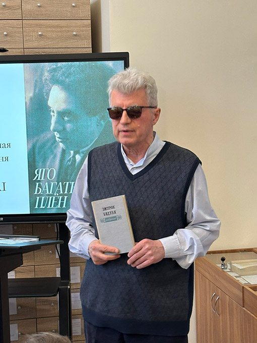 Leonid Dranko-Maisyuk‘s poetic improvisation revived the audience’s impressions and inspired a new reading of long-familiar works by Z.Byadulya. Poet L.Dranko-Maisyuk also presented a valuable gift to the BGAMLI collection – a book by Z.Byadulya.